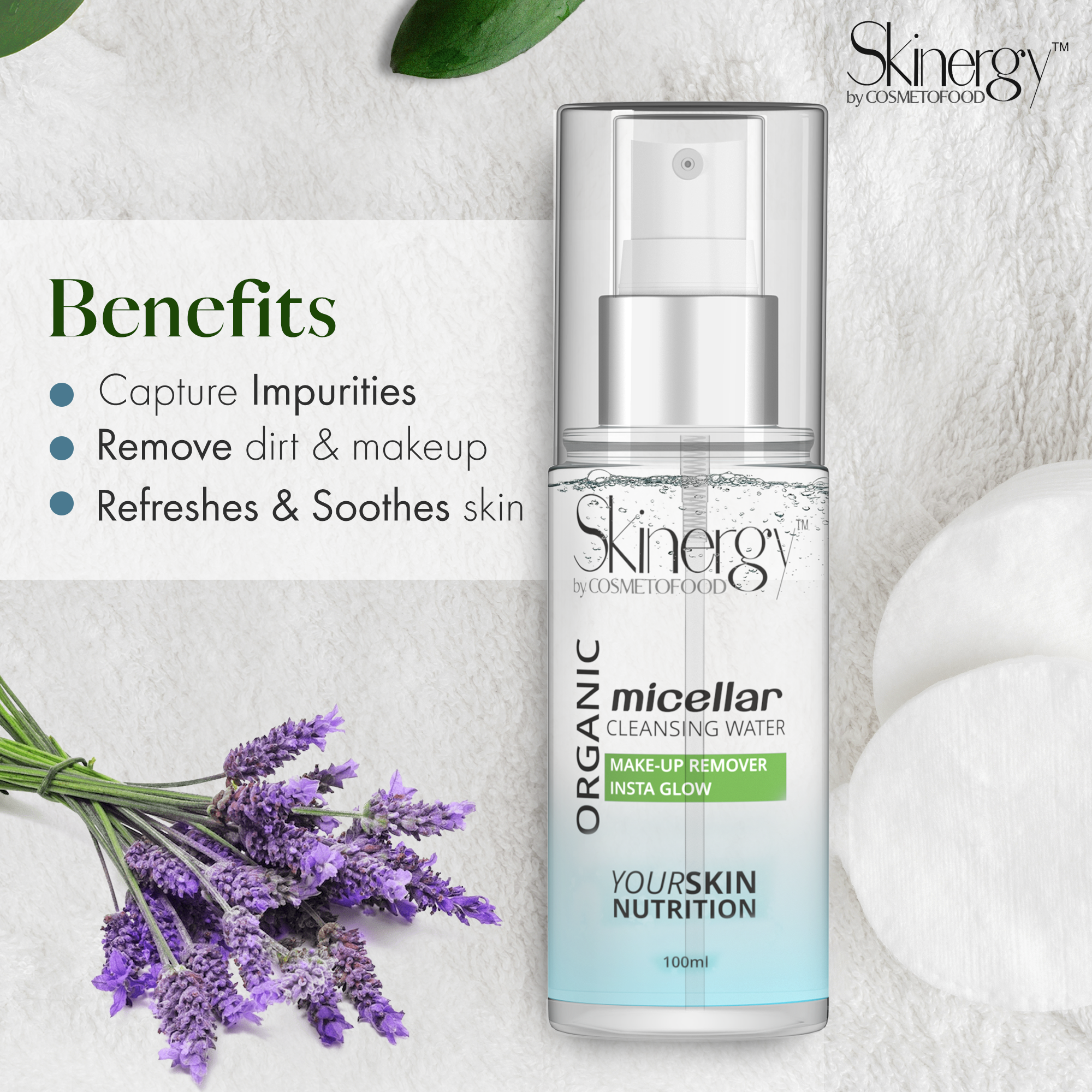 “Oily, dull or tired skin snaps into glowy phase with a spritz of this organic micellar water cloaked with the goodness of orange & lavender to get complexions looking luminous and fresh while also keeping excess oil in check. SO!!! Spritz your skin for an instant pick-me-up skin or for your lazy makeup removing moments!!!!!!